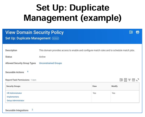 Because duplicate management involves sensitive data, security is paramount. The role-based model in Workday ensures that only authorized users can act on potential duplicates, preventing malicious or reckless edits from being made.